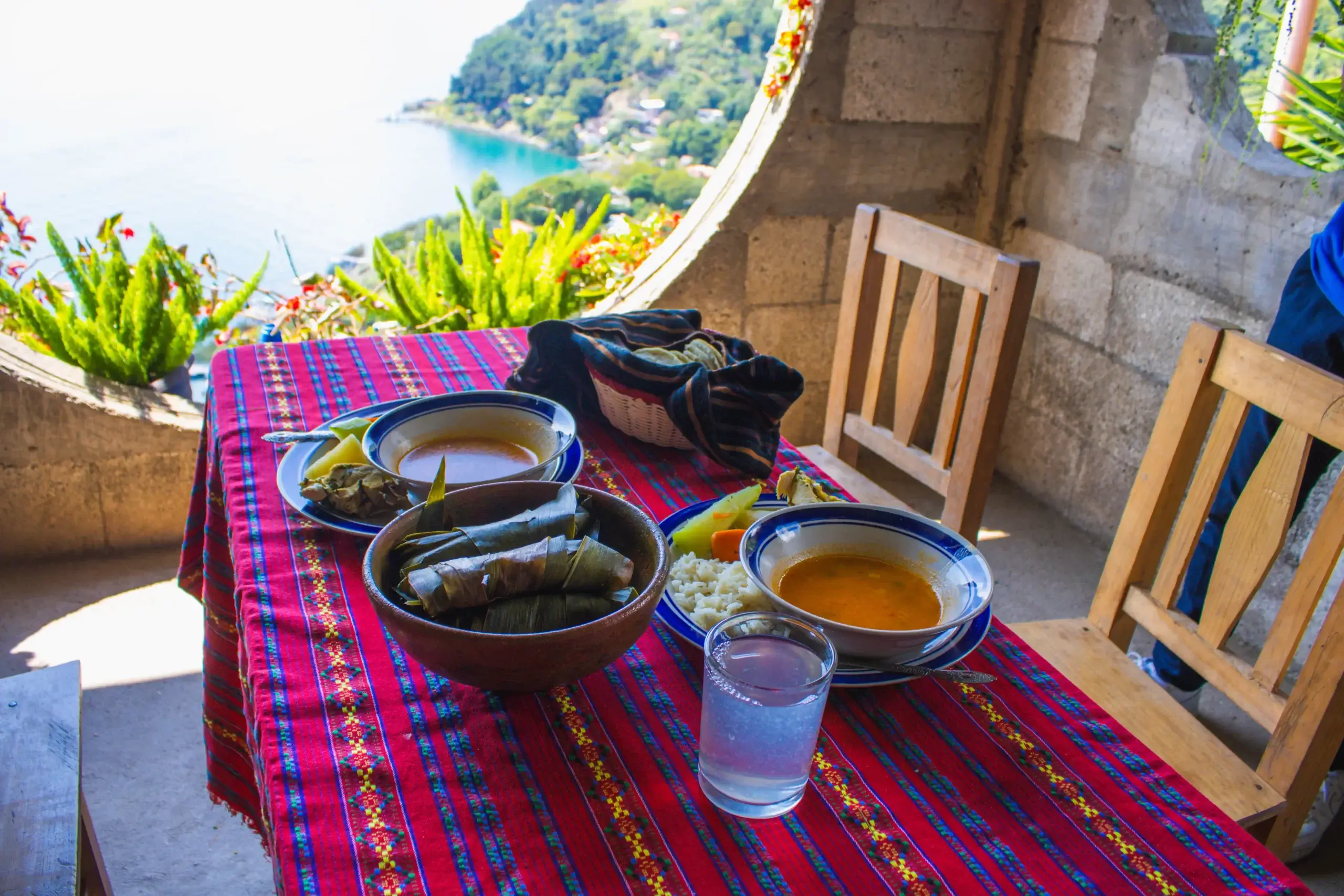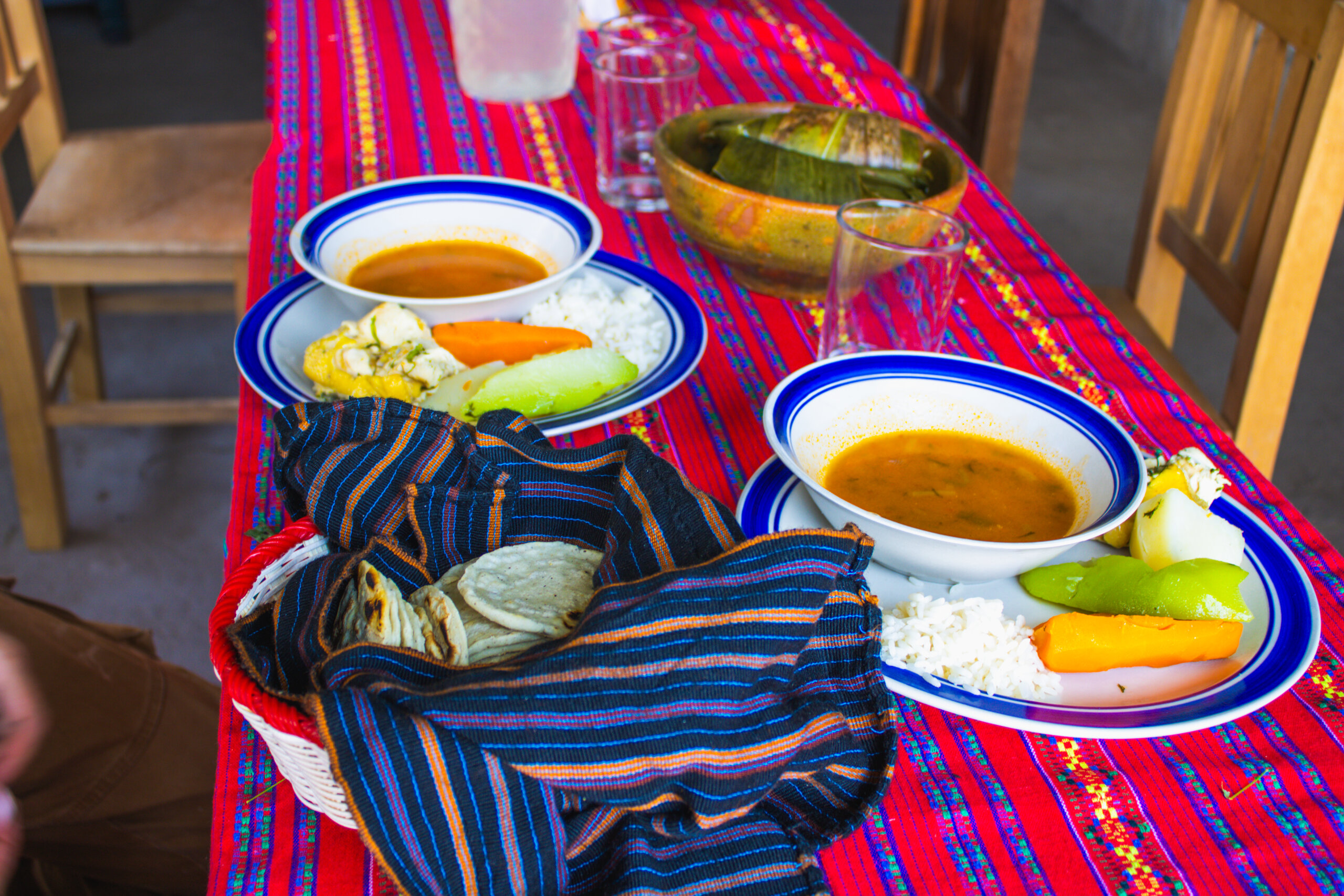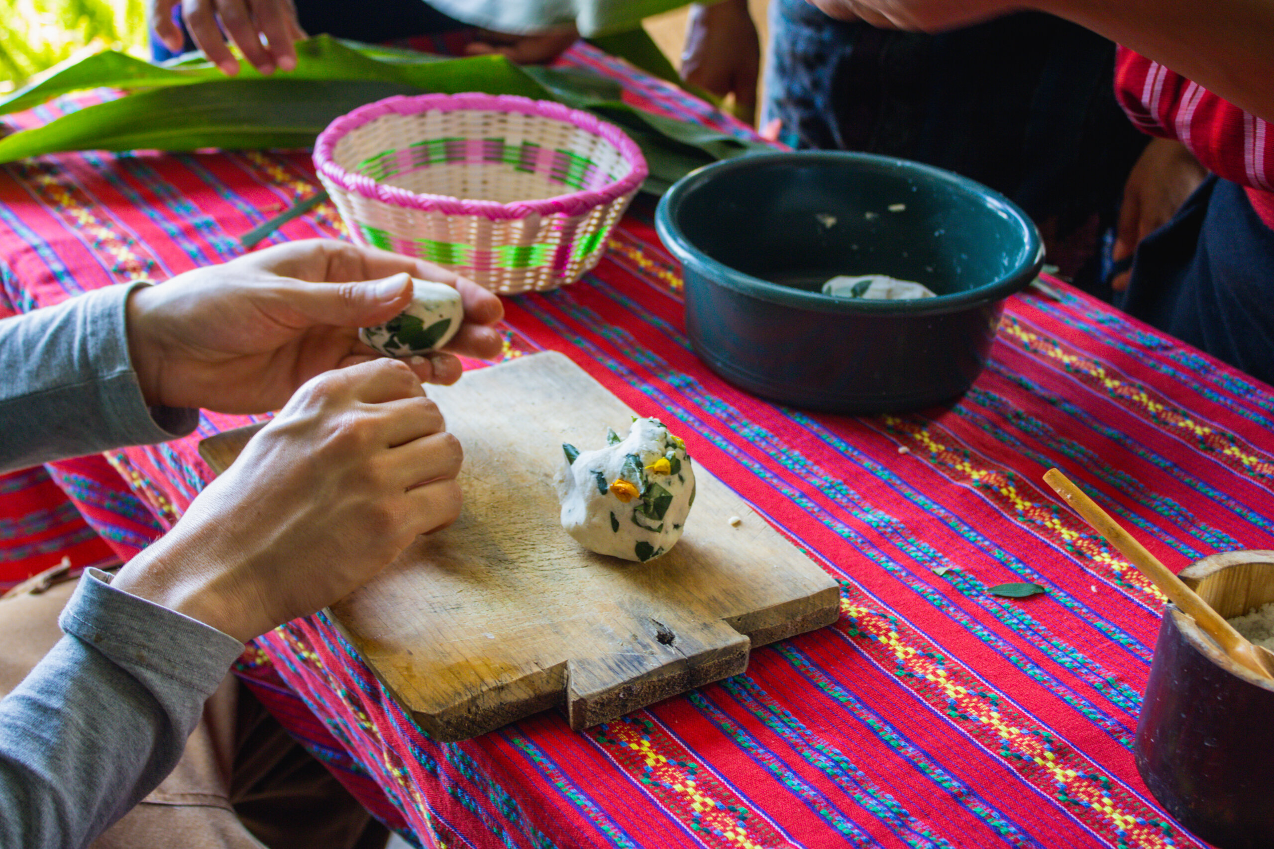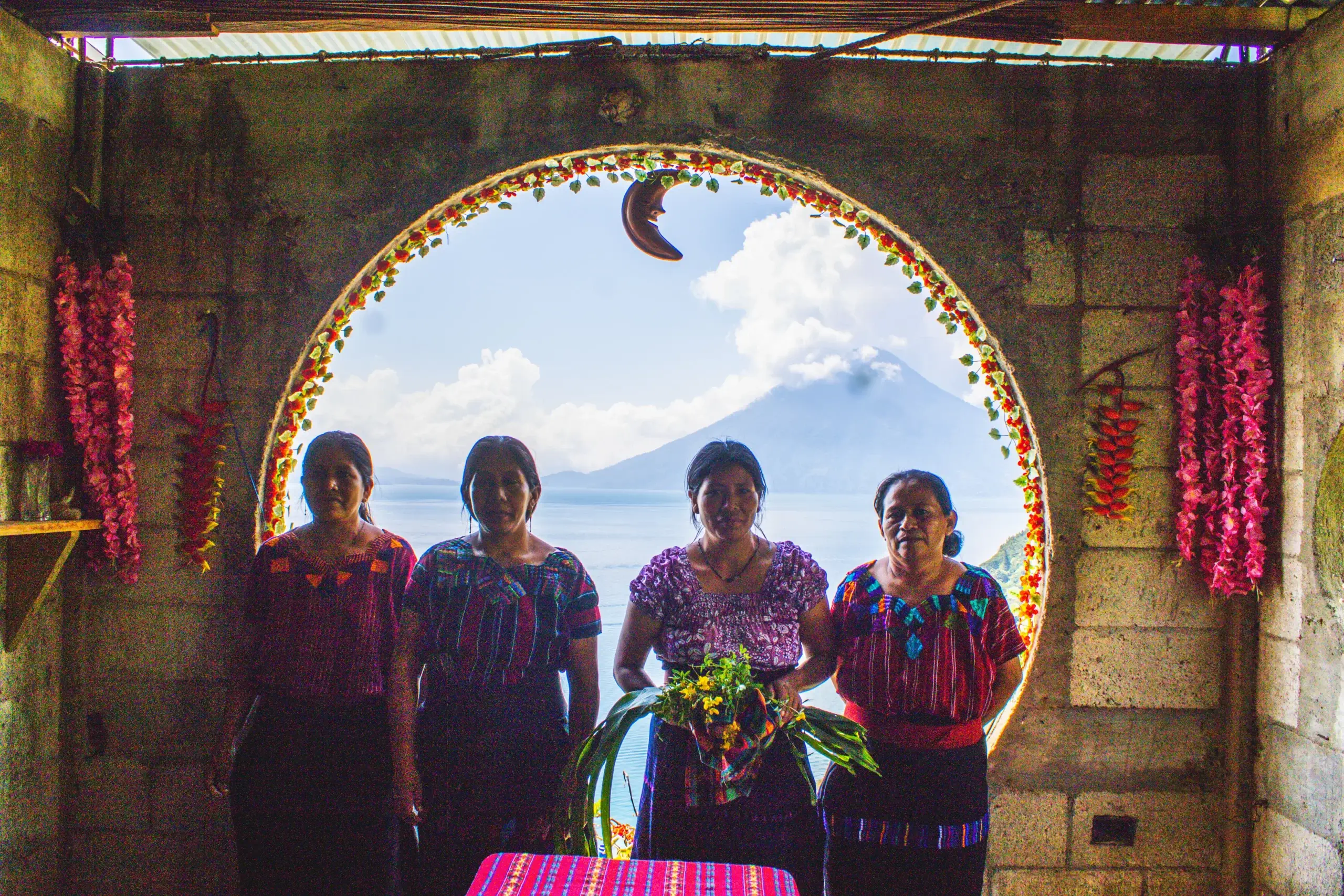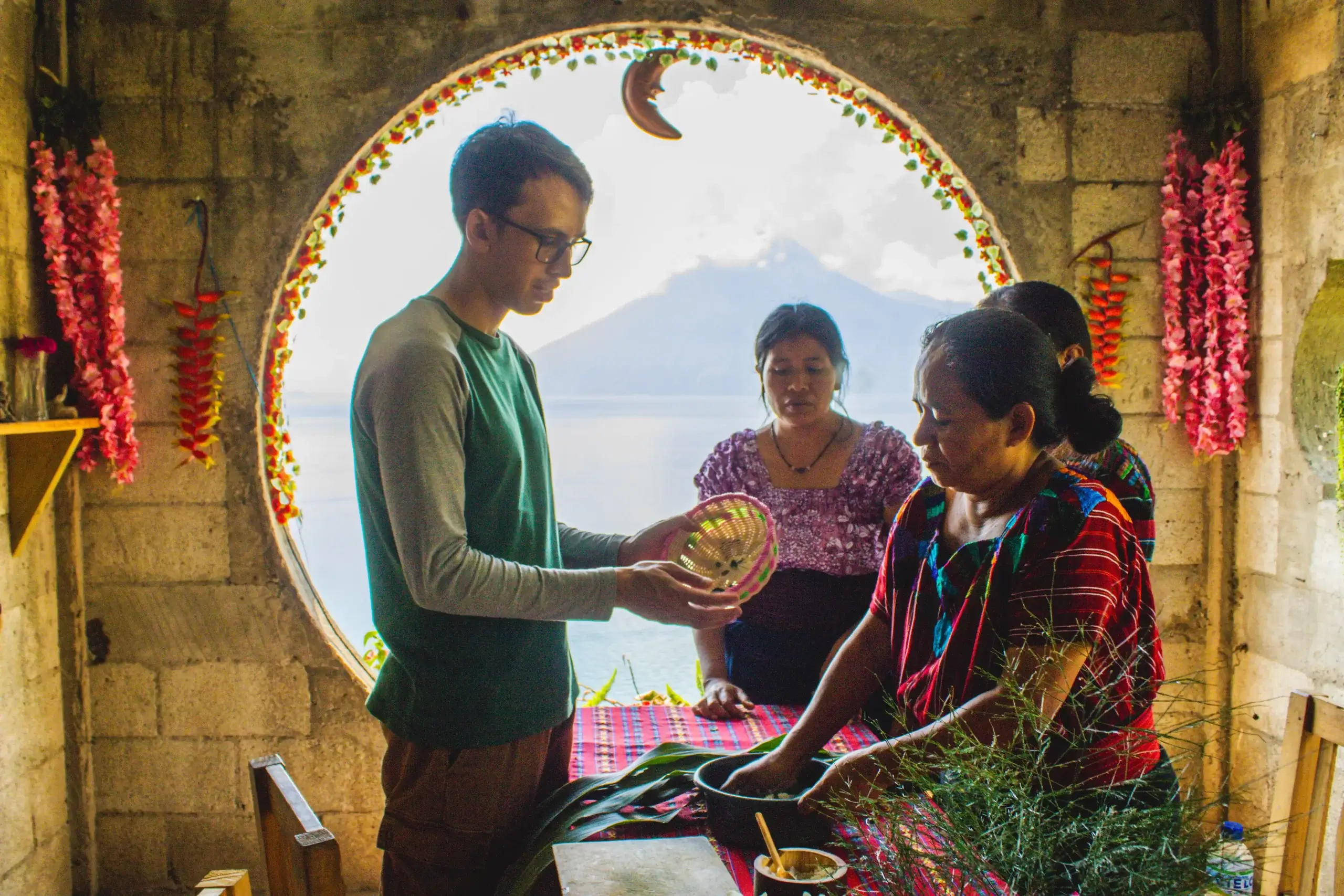 Suporta estos mujeres en su cocina, dónde puede probar la cena típica de la región inclusivo de tamales, pepián y elotes.